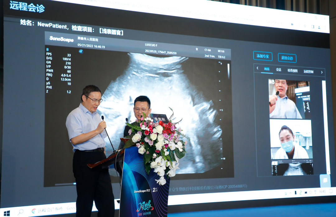 现场还使用太阳成tyc7111cc官网“云影会”远程会诊系统进行了演示,特别邀请李胜利教授对西藏那曲市人民医院嘎措主任的产前超声AI检查进行了远程点评。位于“世界屋脊”的嘎措主任应用“凤眼S-Fetus”功能进行了现场超声扫查,由身在鹏城的李胜利教授对扫查图像质量进行了点评。该环节中李教授表示“凤眼S-Fetus”自动抓取的切面图像质量可以对标三级医院,给予了嘎措主任极大信心。