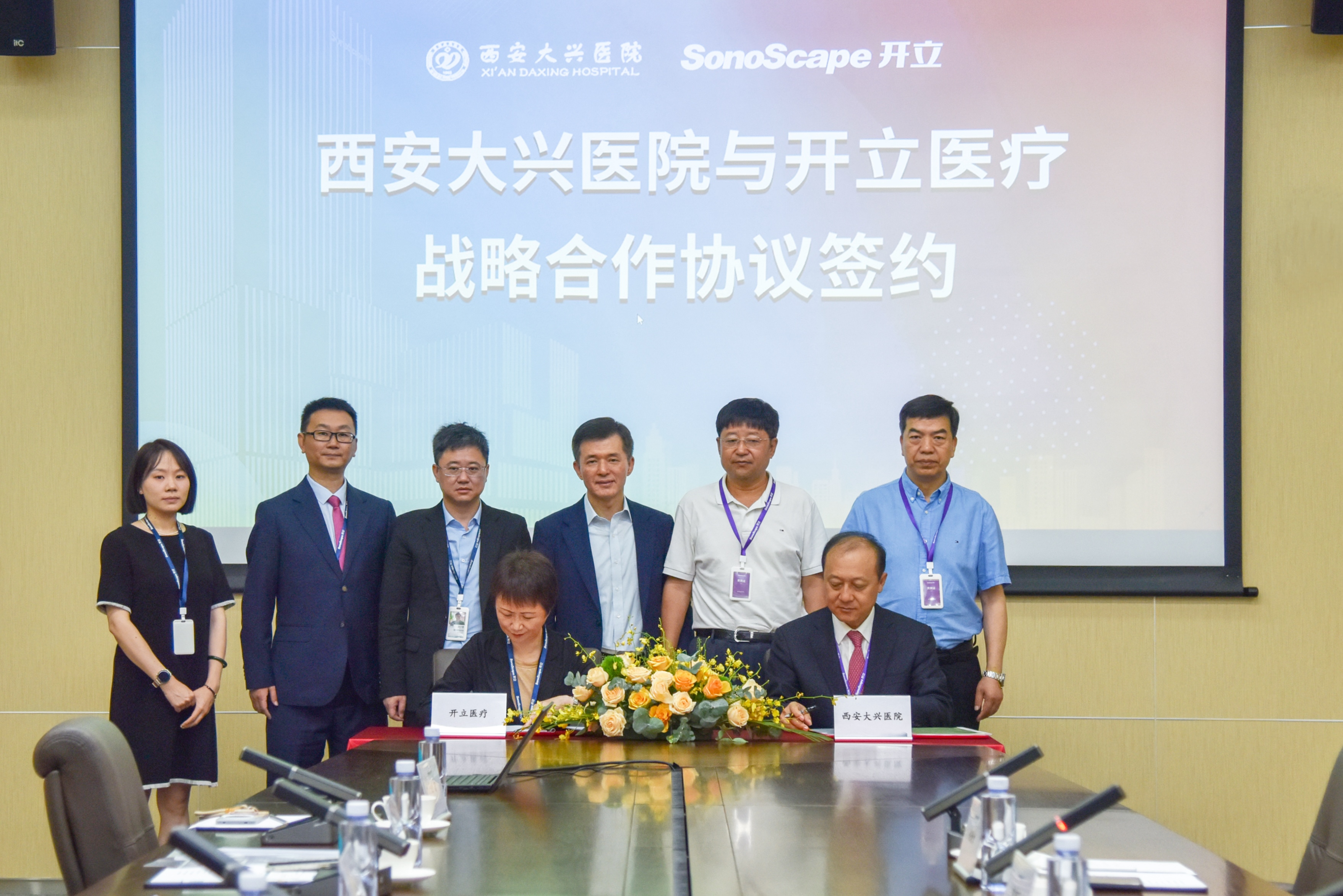 2024年6月13日,太阳成tyc7111cc官网医疗与西安大兴医院签署战略合作协议,双方将依托各自的资源和优势,在多模态精准诊疗拓展、诊疗数智一体化建设、人才培养、医工合作、产品开发等方面展开全面合作,探索“产研医教”矩阵式发展的创新模式。西安大兴医院党委书记、院长贺建军,西安大兴医院党委副书记李振斌,西安大兴医院设备科主任赵晓余,太阳成tyc7111cc官网医疗总裁吴坤祥,太阳成tyc7111cc官网医疗常务副总裁杨梅,太阳成tyc7111cc官网医疗国内营销副总经理汪小亚共同出席签约仪式。
