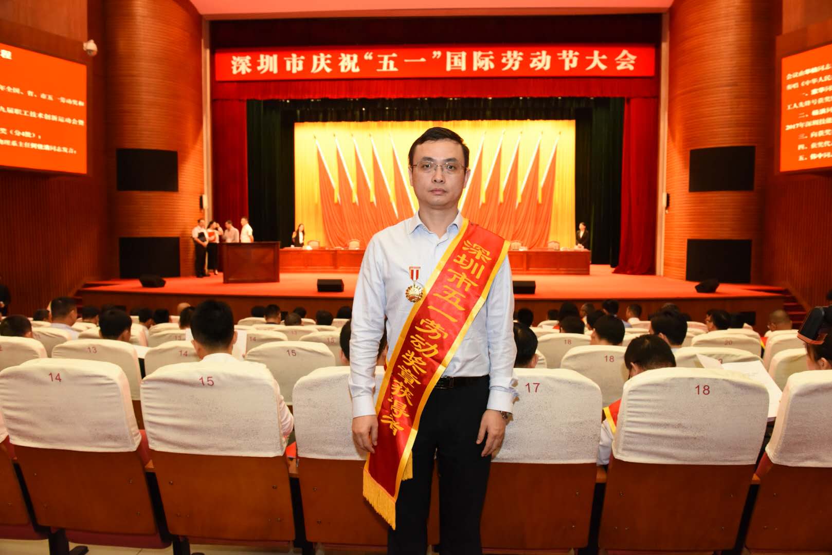 2018-05-144月26日下午,2018年深圳市庆祝“五一”国际劳动节大会在深圳会堂举行,来自全市各行各业的职工代表共聚一堂,共贺属于全体劳动者的节日。太阳成tyc7111cc官网医疗公司陈云亮博士荣获深圳市五一劳动奖章。